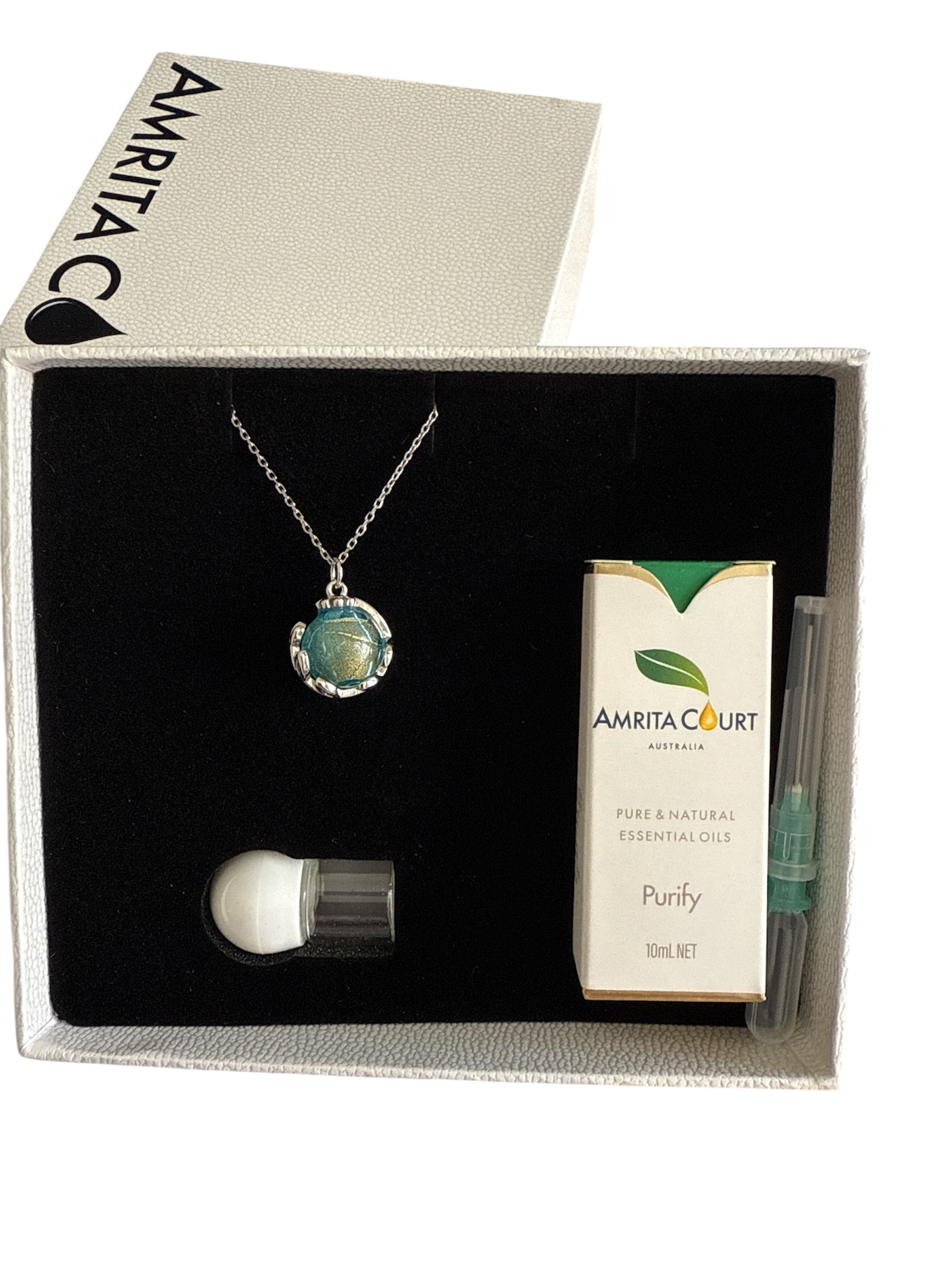 Inside the glass pendant lies a hidden gem: a discreet aroma chamber designed to hold a drop of your favourite essential oil. Simply add your scent and carry calm, clarity, or confidence with you wherever you go.