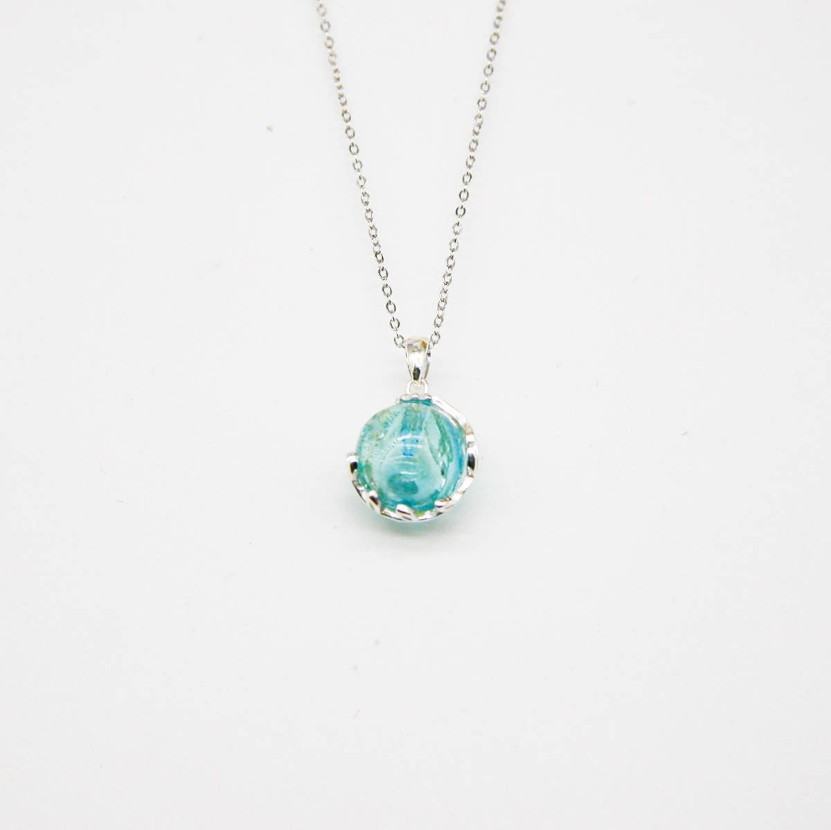 Each necklace is delicately crafted with 18k white gold-plated detailing and a hand-blown Murano glass orb, kissed with shimmering gold flakes that resemble distant celestial bodies. No two are exactly alike—each one a tiny universe, swirling with energy and beauty.