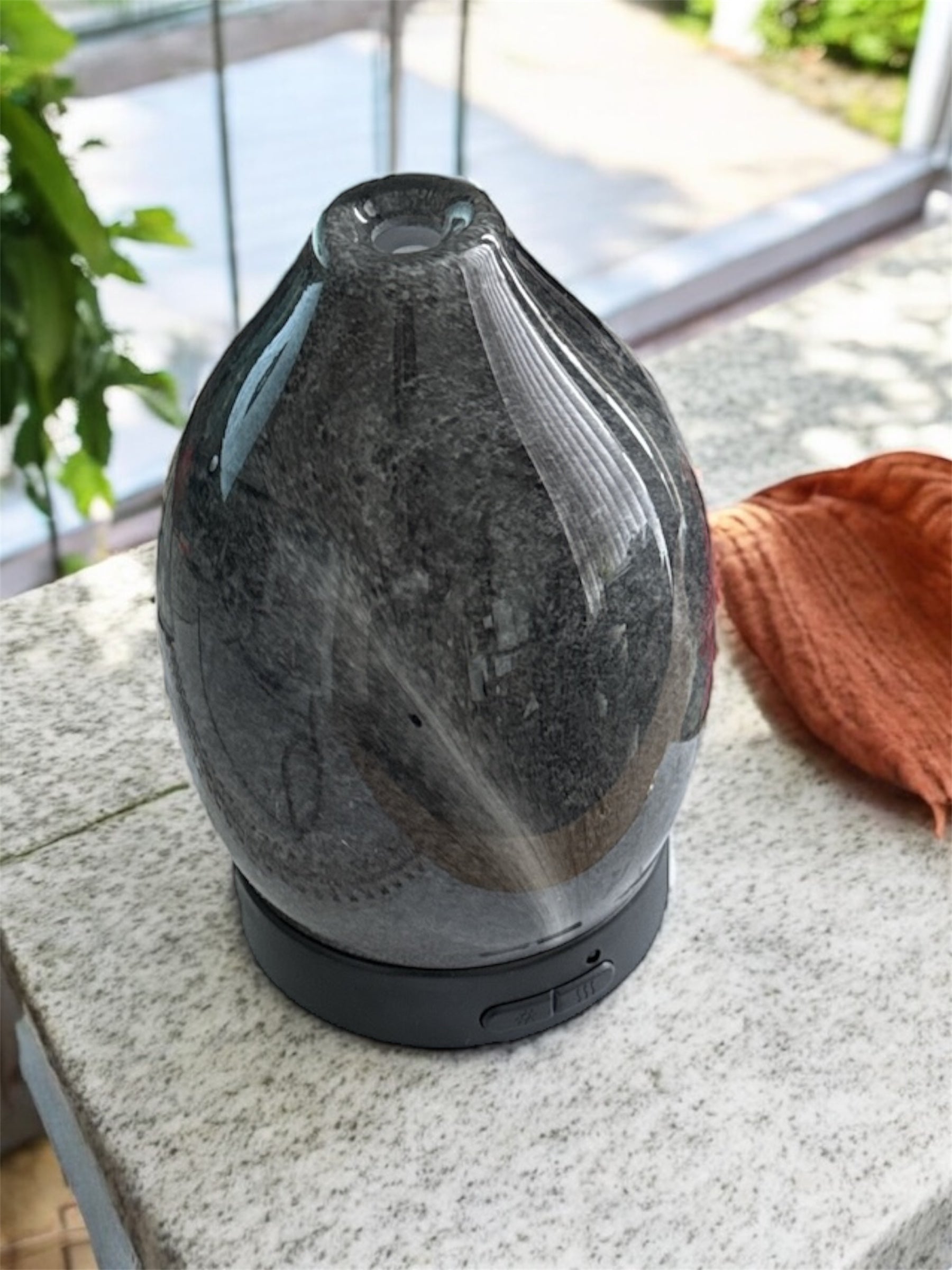 With its elegant vase-like silhouette and marbled black-and-white swirls, the Obsidian Ultrasonic Aroma Diffuser brings a touch of earthy sophistication to any space. Watch as the gentle mist rises through the swirling design — a visual reminder to pause, breathe, and reconnect.